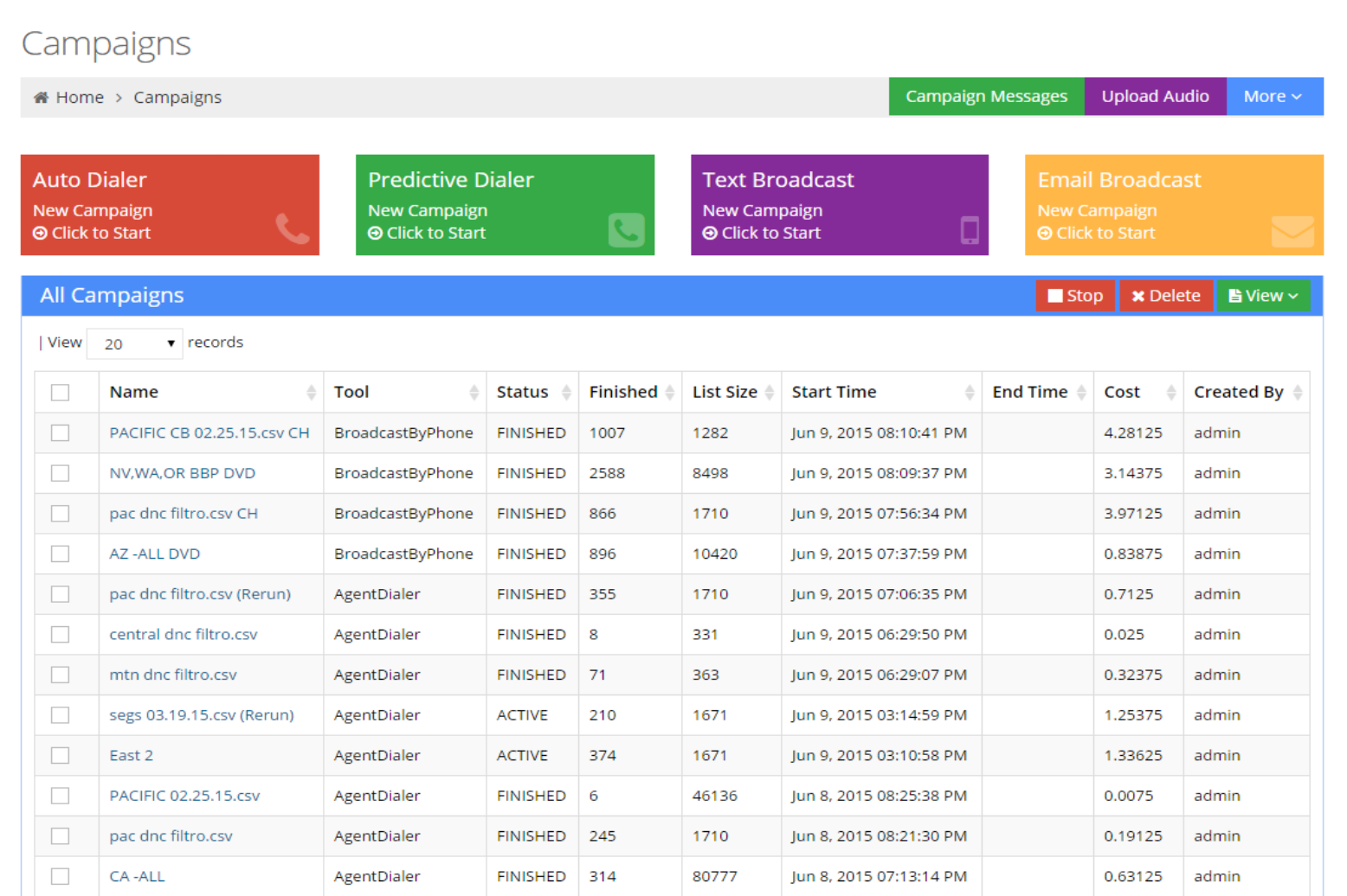 Run multiple campaigns simultaneously, each with its own message, campaign options, call list, and transfer agents.