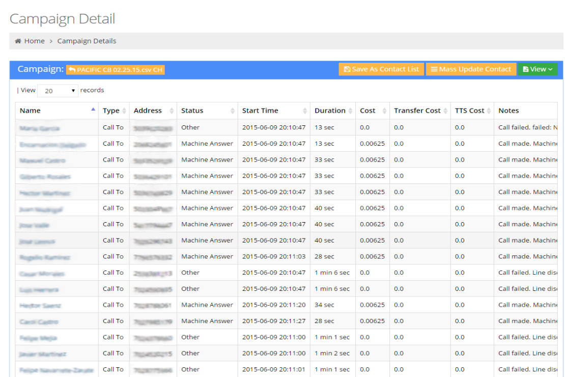 See your campaign results in real time. Summary report or detailed call info about each call.