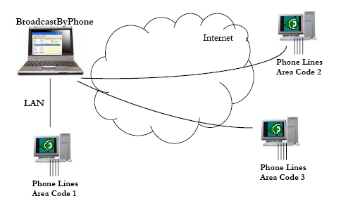 Compared with a centralized solution, this cloud-based, distributed architecture enables virtually unlimited phone lines by adding new system to the network; it offers superb reliability since any failed computer is not going to affect the whole operation. Further, by setting up the system in locations with different area codes, all the calls can be local. Also, since each computer is a mini-broadcasting system, they can be used independently.