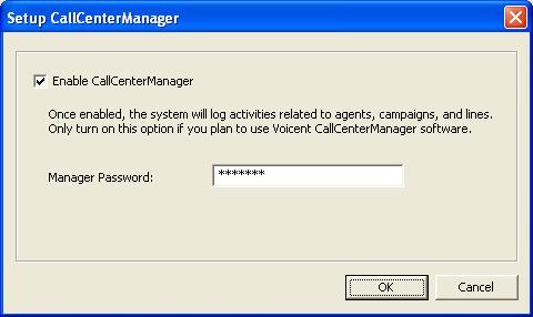 Select Enable Call Center Manager. Optionally, you can setup a manager password.