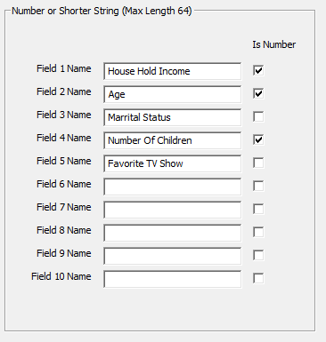 In addition to the standard customer record fields, such as name, phone number, and job title, you can specify custom fields to better describe your customer base. To define new CRM fields, select "Contact" from the program main menu, then select "Customer Fields". The following figure shows the definition window.