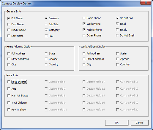 Click the "Result Display" button to set the display options. The CRM customer records have many fields, select the ones you want in the results.