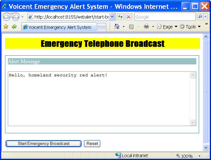 This sample builds a simple, web-based emergency notification system using Voicent Java Simple Interface. For other programming languages, the steps are similar. Source code of this sample is included, and you are free to use, redistribute, or modify the system any way you prefer.