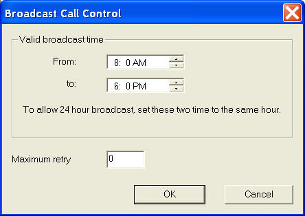 You can set broadcast options by selecting Broadcast > Broadcast Options... from the program main menu.