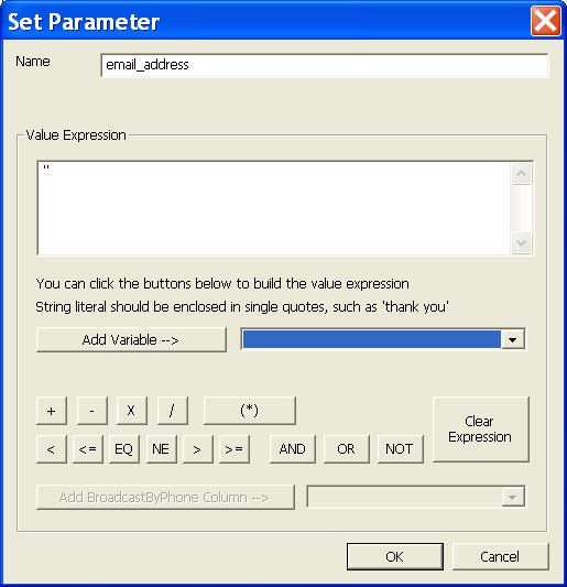 Enter variable name and initial value, then click the OK button. The default value is an empty string. For more information about setting value expressions, please refer to set variable action section.