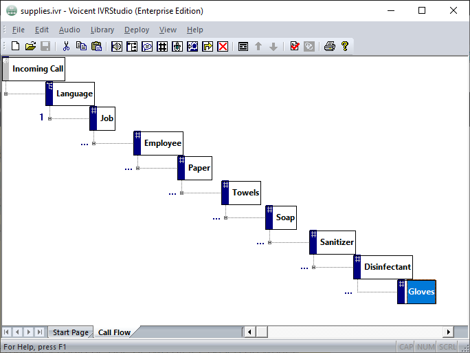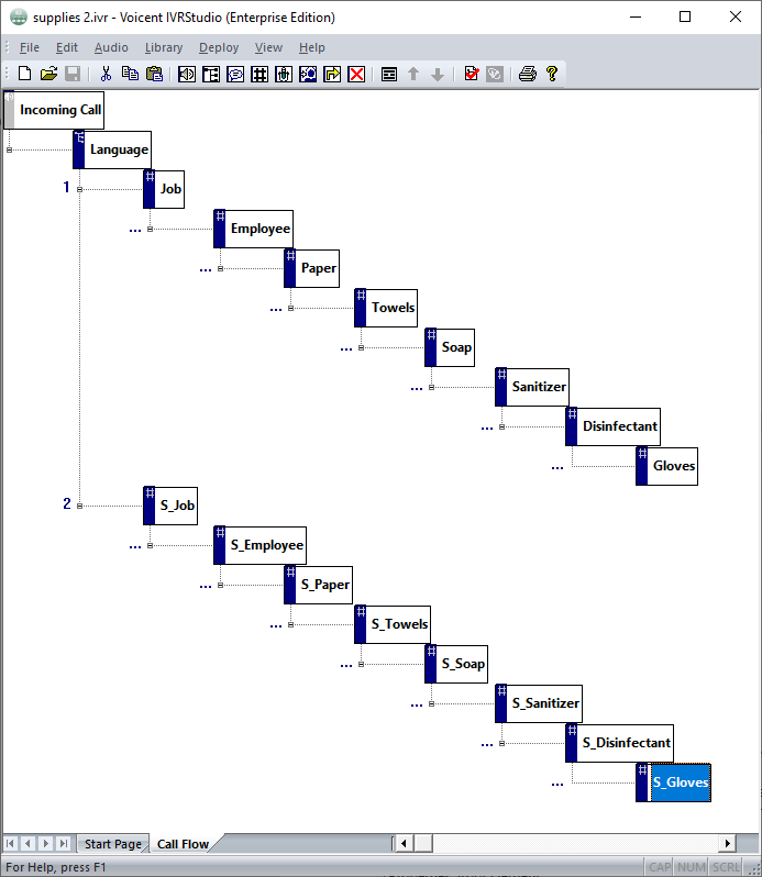 The call flow uses a series of digit element to collect the number of supplies needed.