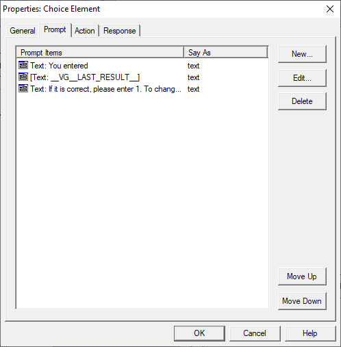 Use the system variable __VG__LAST_RESULT__ for the number just entered by a caller. Use it in the confirmation prompt as follows: