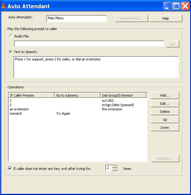 This is the dialog to create or edit an auto attendant. It basically defines the following: