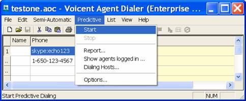 This section refers to using Skype software (the Skype soft phone program you install on your computer) for Voicent Agent Dialer. Though it is possible to use it for Agent Dialer, using Skype soft phone is not recommended for predictive dialing. Comparing with VOIP/SIP predictive dialing, the main disadvantage of Skype predictive dialing is audio quality and initial response time.