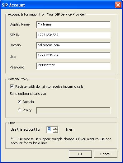In SIP ACCOUNT window, click Add button, then enter your Callcentric account information.