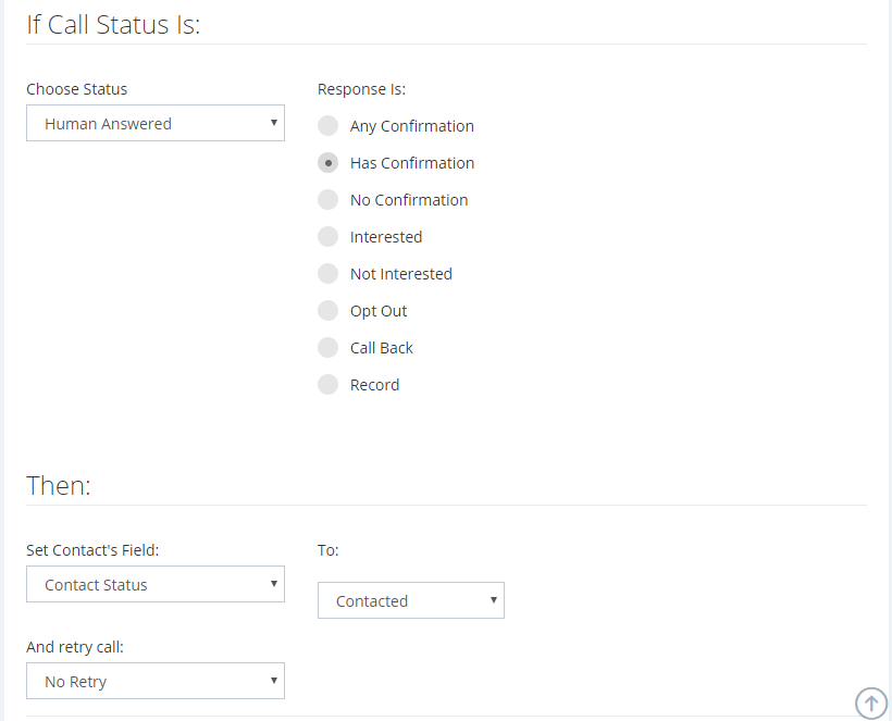 It will then launch a campaign to call work phone only. Since the advanced list criteria for the campaign limits contacts with Contact Status not equals to Contacted, only contacts not confirmed will be called.