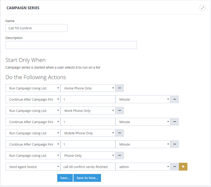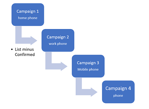 However, it is sometimes useful to try to call all available phone numbers until someone is reached.. This example shows how to set up a campaign series to achieve that.