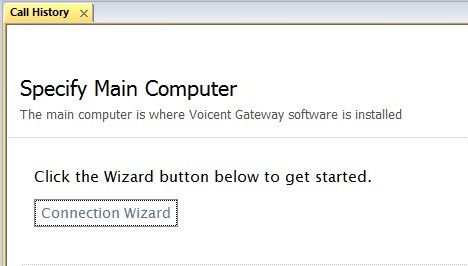 After you have installed the RemoteAgent software, run it and connect to the dialing computer. To connect to the dialing computer click “Connection Wizard.” Follow the on-screen instructions to connect to the main installation of Voicent software.