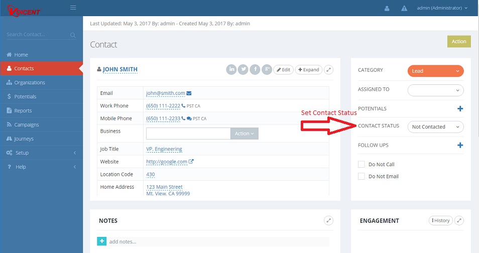 During a campaign, when a contact is connected to an agent, the automatic screen pop up should display the contact's CRM record. Any field can be used to indicate whether this contact should be called in subsequent campaigns. For example, you can set the category to Warm Lead, or select the Do Not Call box, or click the + sign to schedule a follow up call. Basically, the contact's CRM record should be used to manage your sales process and campaigns.