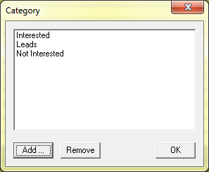 In this window you can view the categories you may have already created. To create a new category, click or click if you would like to delete a category. Click when you are finished.