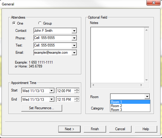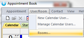 Rooms are also used when creating a new appointment. Double click on the calendar the time and date you wish to create a new appointment to bring up the following window: