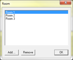 Click and fill in a name in the resulting window. Click to delete an existing room. Press when finished.