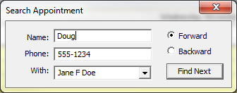 Here you can search by name and/or phone number. Additionally, you can search by who the appointment is with if you have multiple users utilizing Auto Reminder, which requires a multi-user Enterprise Edition license.