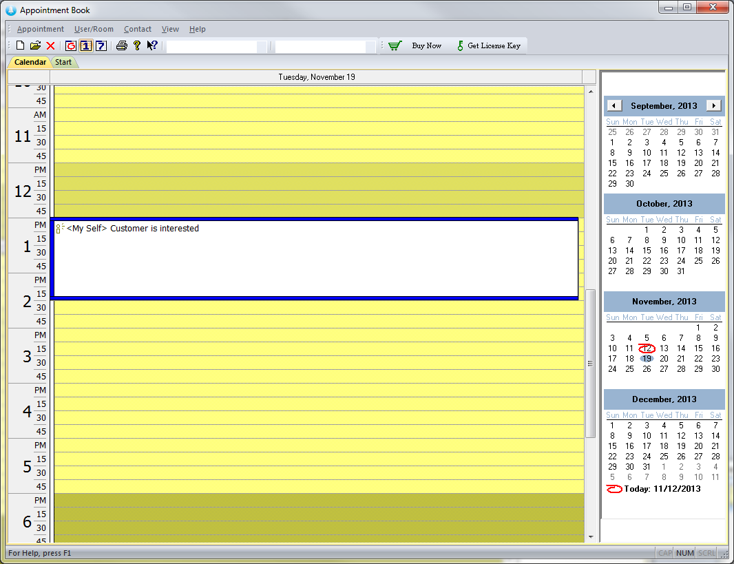 To delete an appointment, first select the appointment by clicking on it then either press the key or click the delete icon on the toolbar.