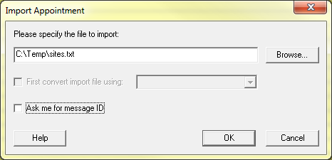 From the dialogue, choose an appointment file, such as you saved from previous steps. If you have a conversion program, you can select it here. Otherwise, simple click the button to continue.