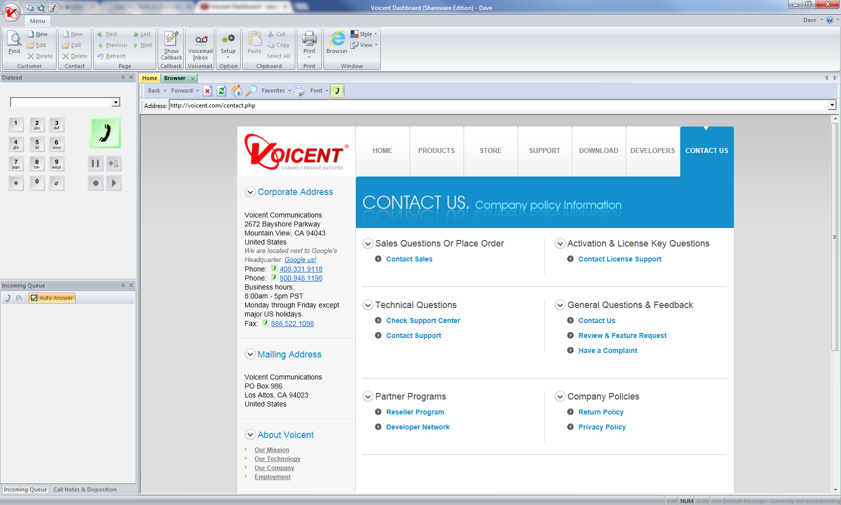 Please note that you must have Voicent FlexPBX installed and you must be logged into Dashboard as an extension in order to make outbound calls from Voicent Dashboard.