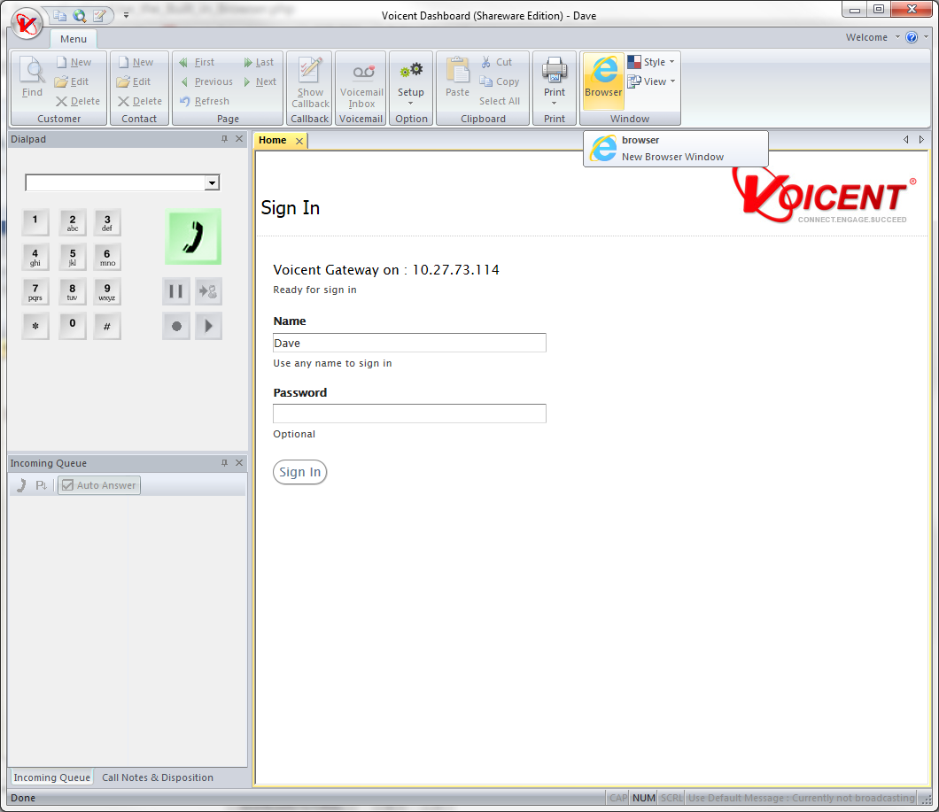 You can launch an Internet Explorer browser window by simply clicking the button on the toolbar. This browser window shares the call history and the favorites list with the Internet Explorer software already on your computer.