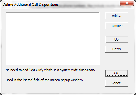 Additional call disposition information can be installed on Voicent Gateway. To set up more call disposition notes, open , select -> -> Tab, then click the button.