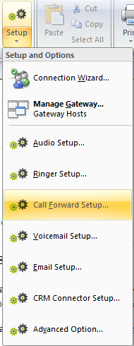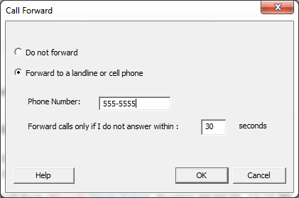 To setup call forwarding, select -> from the program main menu. Enter the phone number that you wish incoming calls to be forwarded to.