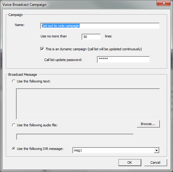 With release 9.1.0 Voicent's Call Center CRM will feature the ability to start and manage dynamic campaigns from within the Call Center CRM window. Running a dynamic campaign (as opposed to a static campaign) allows users to run a campaign indefinitely. If a lead is added to your database that fits the criteria for an active dynamic campaign, then that lead will be automatically added to that campaign. Even if a dynamic campaign has already called/texted/emailed all off the contacts in the campaign, it will still be considered active. This means that the campaign will be on hold but when more contacts are added to the campaign, it will automatically resume the relevant broadcast.