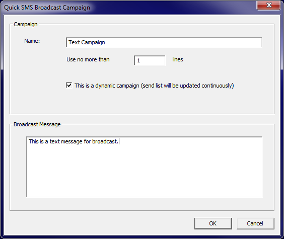 In order to use Text Broadcasting, you will need a USB modem with a sim card installed as this campaign uses BroadcastBySMS to make the texts.