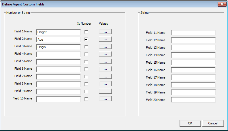 In the new window enter the extra fields that you wish your agents to have. To define a drop-down menu, click on the button next to the field name and fill out the options. It is newline separated.