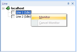 Voicent Call Center Manager allows a manager or a supervisor to monitor a phone line. To start monitoring a line, right click the line in the Line Control Window, then select Monitor.