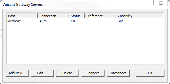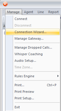 To start using Voicent Call Center Manager, connect to the computer that is running Voicent Gateway. To do so, select -> , and follow the onscreen instructions to connect to Voicent Gateway. If the Voicent Gateway is installed on the same computer as the Voicent Gateway, connect to . Otherwise, connect to the IP address that has Voicent Gateway installed.