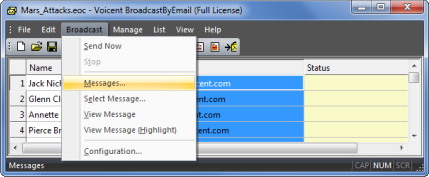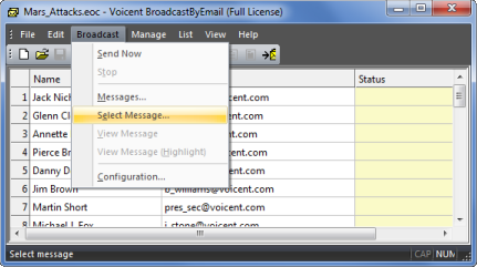 Open BroadcastByEmail, then in the column type in the desired recipients' email addresses. Each row should only contain one email address. The Name column is not required.