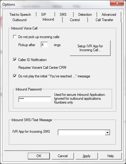 By default, Voicent Gateway does not answer incoming calls. To enable incoming calls, select -> from the . Choose the and uncheck the box labeled