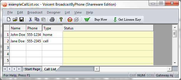 You can start a broadcast to test the IVR application. Everything should be the same as launched from the inbound IVR application except the recorded_message.wav is a copy of the Voicent sample message.