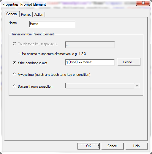 Set Transition Condition for Home Element