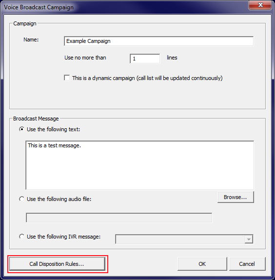 When running a Predictive Dialing or Voice Broadcast Campaign you will have the option to set