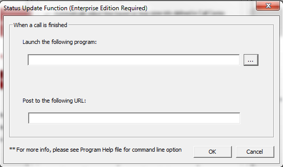 This option is also mostly used for program integration. A program will launch whenever a call is finished. The parameters are the same as those used in the option for URL as defined above. The program or script will be launched as follows: