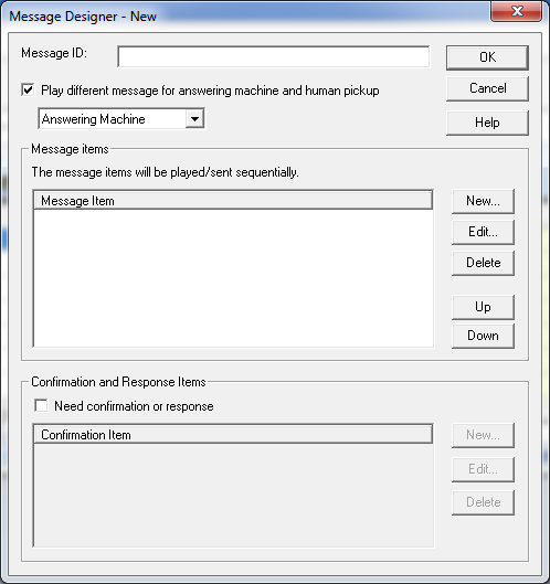 Message Designer allows you to create a customized message for broadcasting. For example, you can play customized messages in the case of an answering machine picking up the call.