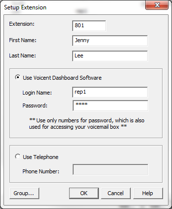 Having created at least one group you can now add agents to whichever group you like. In the tab of Flex PBX, click to add a new agent's information or click on to edit an existing agent's information. Either way you will open up a window like the following: