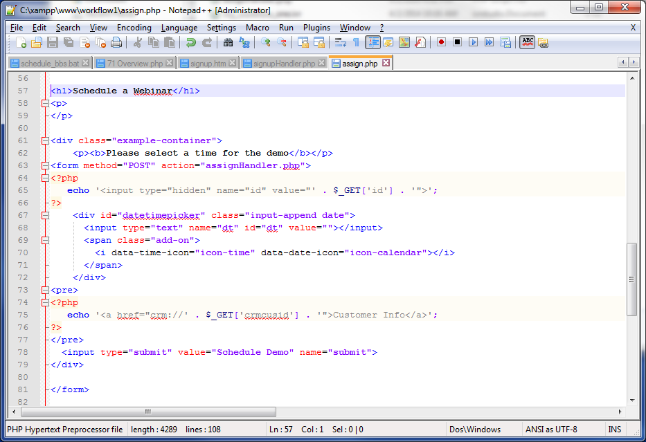 When the presenter clicks the link in the notification email, the above php file will be executed. The link contains the workflow instance ID and the customer CRM record ID.
