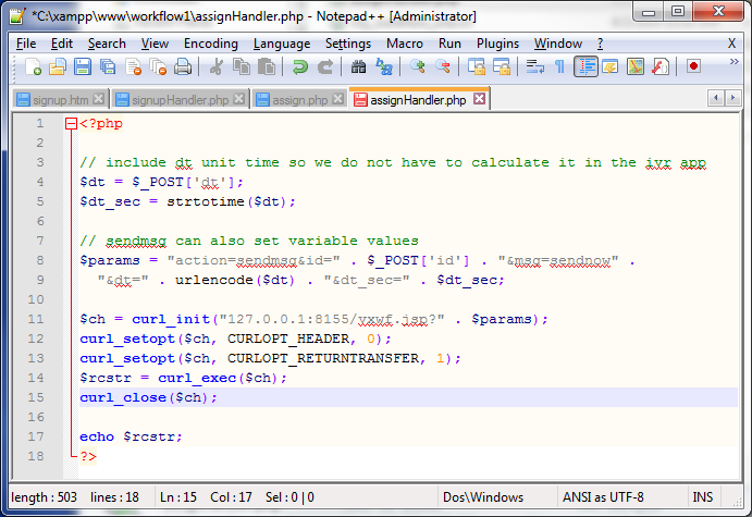 Here we use the same workflow URL for sending a message to a workflow instance. Make sure the action is set to sendmsg. The message is defined in msg.